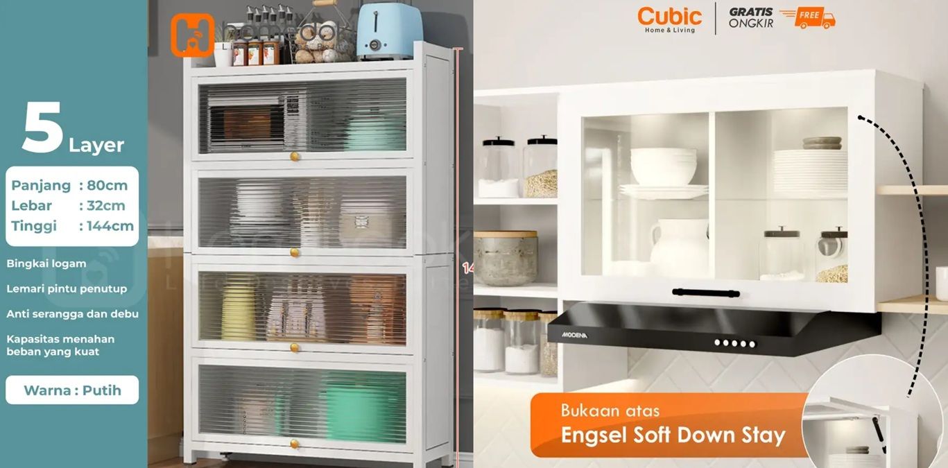 – Kemampuan daya dukung lantai ambalan sebanyak 10 kilogram per tingkat membolehkan penempatan pajangan, vas bunga, buku, serta pigura foto dengan ukuran lebih besar atau bobot lebih berat.