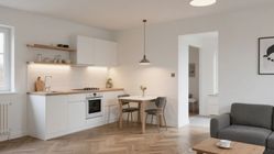 Desain Rumah 6×8 dengan Dua Kamar yang Paling Efektif: Dapur dan Ruang Tamu Bersatu, Ideal untuk Pasangan Muda!