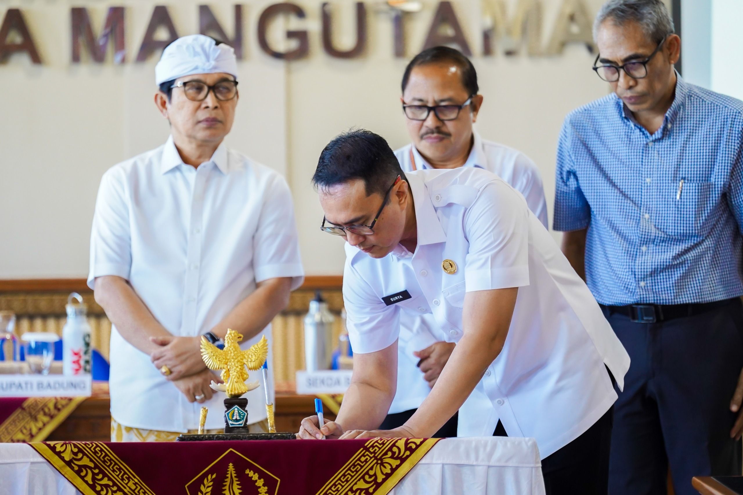 Pemerintah Kabupaten Badung menunjukkan komitmennya untuk mempercepat pemenuhan kebutuhan dasar masyarakat, khususnya dalam hal ketersediaan air bersih. Langkah strategis ini diwujudkan melalui penandatanganan perjanjian kerjasama antara Perumda Tirta Mangutama dengan PT. Pipa Ticini Bali. Proyek ini dilaksanakan dalam skema Kerjasama Pemerintah dengan Badan Usaha (KPBU) model Build-Transfer-Operate (BTO), dan dilakukan di Ruang Rapat Perumda Air Minum Tirta Mangutama, Jl. Raya Kapal, Mengwi.