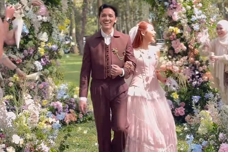 Sementara itu, Faishal Tanjung tampil serasi dengan Nadin, menggunakan setelan jas cokelat klasik dan kemeja putih bersih. Aksesori seperti kalung berbentuk capung dan arm cuff di lengan menambah kesan kreatif dan unik.
