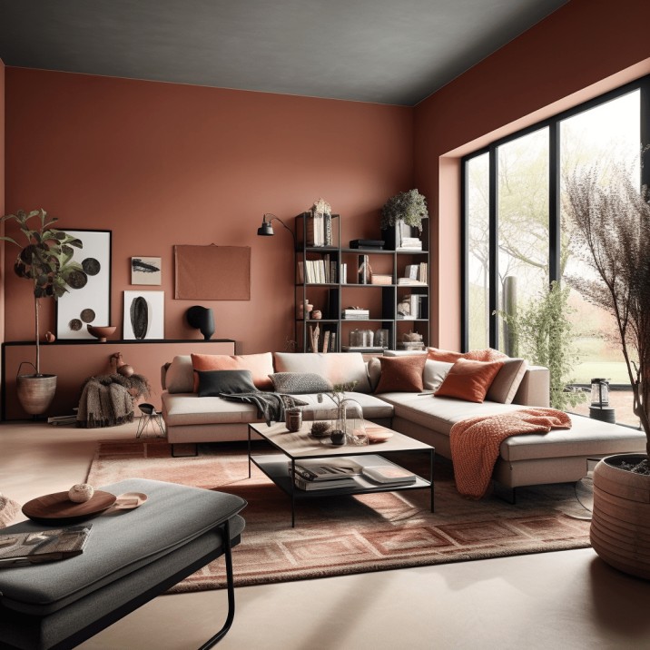 Terakota termasuk ke dalam kategori warna merah-oranye yang cenderung lebih ke arah cokelat. Warna ini memberikan kesan hangat dan unik. Kombinasi dengan abu-abu akan memperkuat kesan minimalis modern pada hunian.